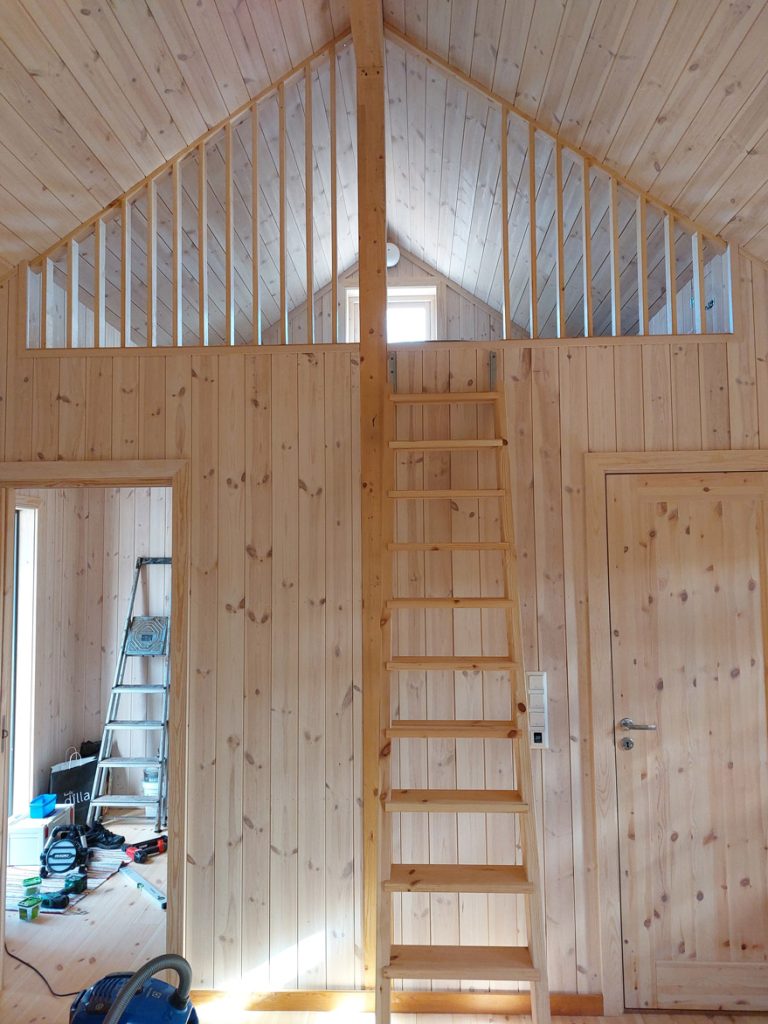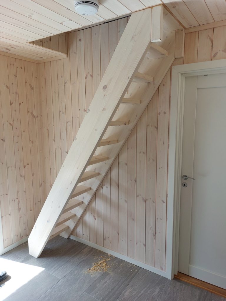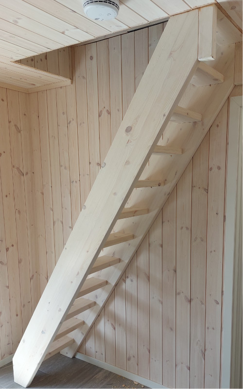 Jeg lager stiger og trapper med rekkverk og spilevegger, tilpasset for trygg og enkel tilgang til hemsen.